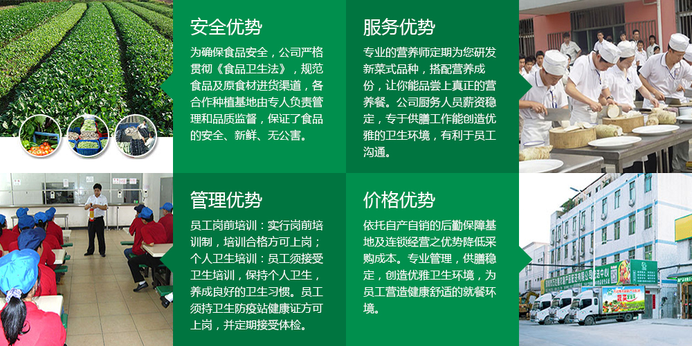 深圳市佳鮮餐飲管理有限公司是一家集農(nóng)副產(chǎn)品配送、餐飲管理服務(wù)為主的有限公司。公司秉承“誠信經(jīng)營、顧客至上”的經(jīng)營理念,嚴(yán)格按照 ISO9001:2000 國際標(biāo)準(zhǔn)質(zhì)量體系進(jìn)行管理。公司經(jīng)過不斷的努力,特別在企事業(yè)單位、工廠及學(xué)校等幾個(gè)領(lǐng)域方面積累了豐富的服務(wù)管理經(jīng)驗(yàn)。公司主要從事餐料配送、農(nóng)副產(chǎn)品配送、學(xué)校食材配送、新鮮有機(jī)蔬菜配送、政府食堂蔬菜配送、新鮮蔬菜糧油配送及學(xué)校食堂承包業(yè)務(wù)。服務(wù)范圍有深圳寶安、福田、南山、龍崗、廣州、惠州、東莞等地。